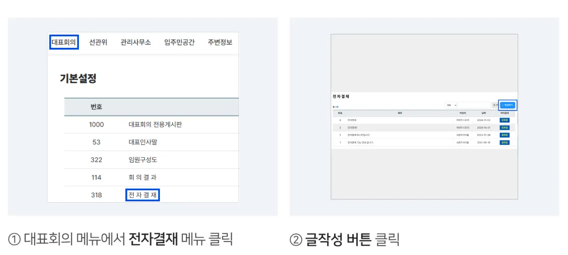 κ΄€λ¦¬μžνŽ˜μ΄μ§€ β†’ λŒ€ν‘œνšŒμ˜ β†’ μ „μžκ²°μž¬