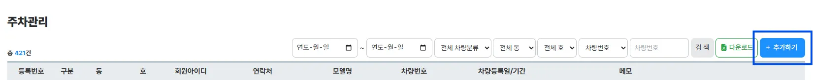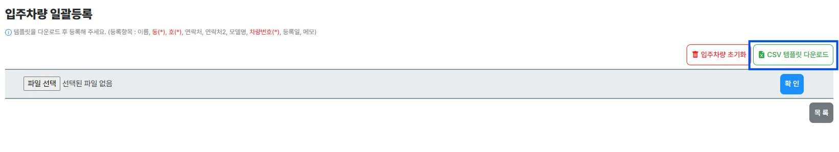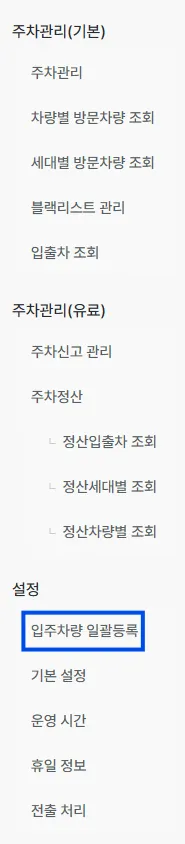 입주 차량 일괄 등록